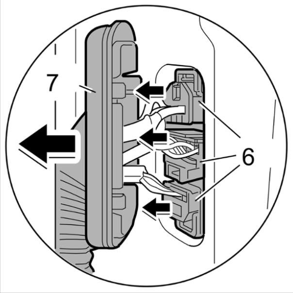8 Вставить колпачки задних монтажных отверстий и подсоединить жгут проводки Kessy – для всех автомобилей: