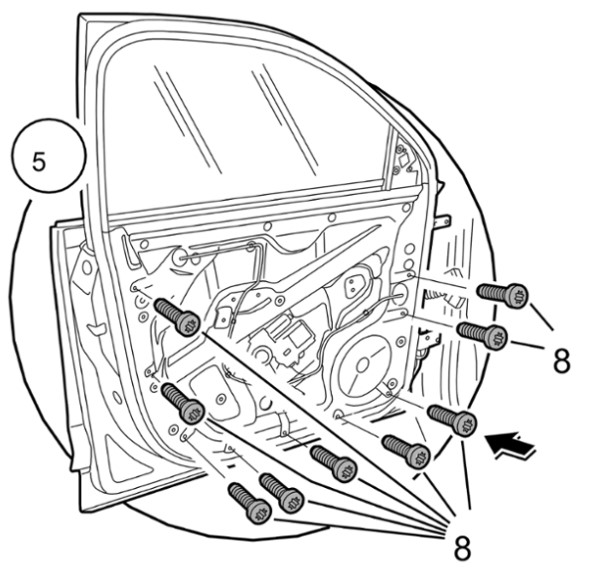 Вкрутить новые крепежные винты -3- замка двери и затянуть с предписанным моментом затяжки