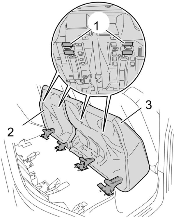 Стуки во время движения обусловлены допусками между задним сиденьем и поверхностью прилегания крюка системы пассивной безопасности.