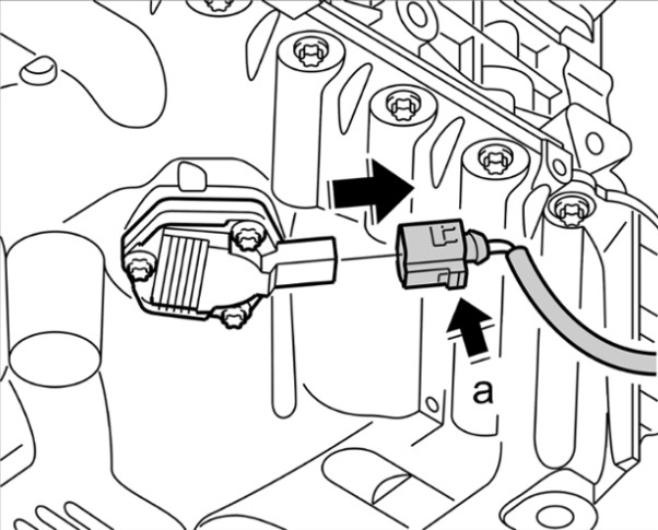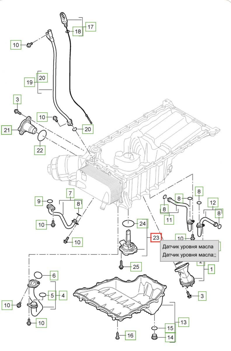 8 Ослабить крепежные винты и извлечь датчик уровня масла из масляного поддона.