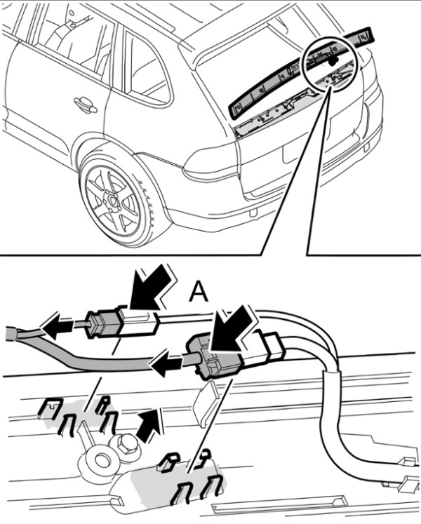 Разблокировать разъем -стрелки A- и отсоединить его.