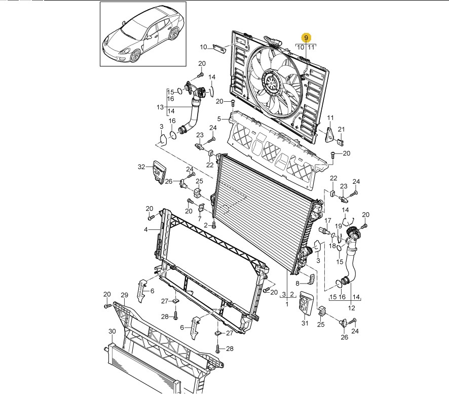 970 производство 2010>>2016 (L) Вентилятор охлаждения радиатора Panamera 4S (970420)