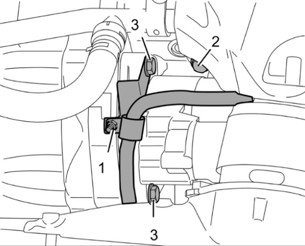 2 Вывернуть крепежный винт -2- трубопровода ATF на колоколе коробки передач.