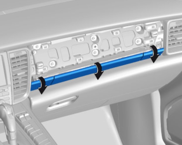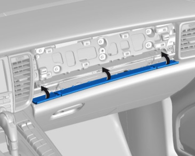 1 Установить накладку передней панели со стороны переднего пассажира.