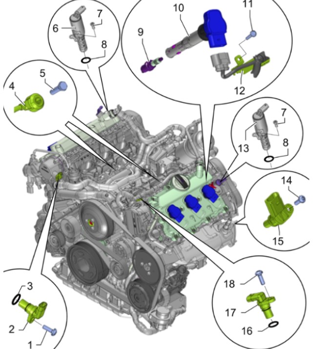 Чтобы проверить, является ли причиной пропуска зажигания на сохраненном в памяти неисправностей цилиндре катушка или свеча зажигания, следует переставить их на другие цилиндры этого двигателя (перекрестная замена).