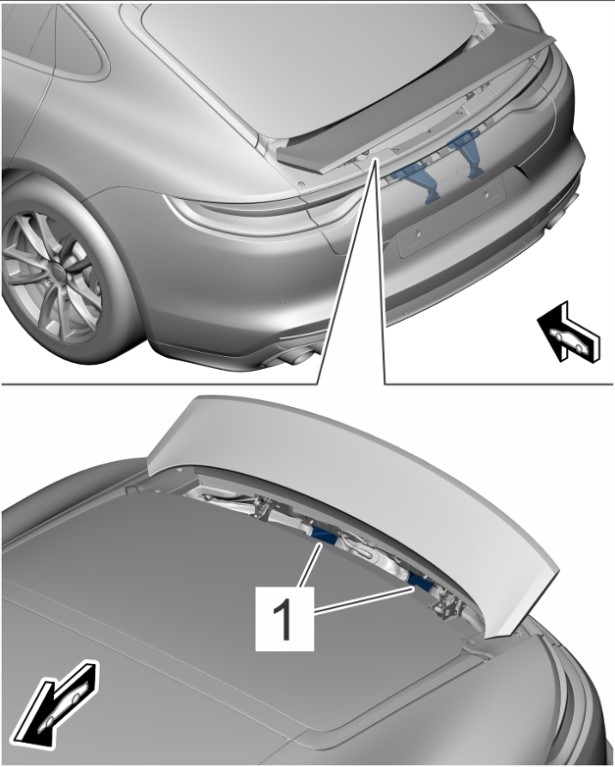 3 Осторожно налить 0,5 л воды -1- в направляющую сдвижного люка -2- и проследить за тем, чтобы вода протекала в соответствующий передний или задний водосток. Поэтапно повторить процесс, увеличив объем воды до 1 и 2 л.
