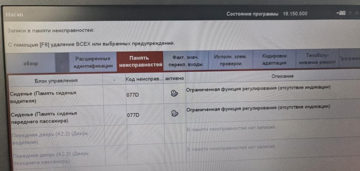 3 В разделе Обзор выбрать блок управления Функция памяти положения сиденья водителя/переднего пассажира . Нажать F12 . Следует создать протокол анализа автомобиля (FAP)? Затем нажать клавишу F11 .