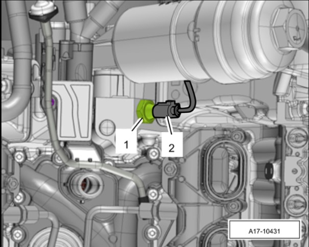 3 Вывернуть манометрический переключатель сниженного давления масла -1- с помощью T40175 - шарнирного ключа