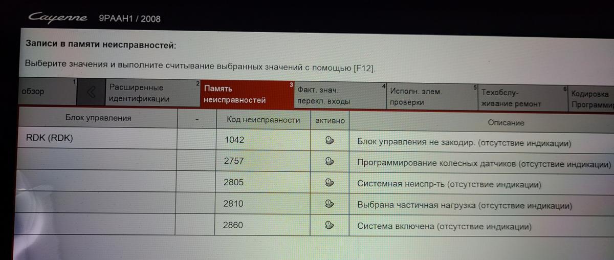 Кодировка блока управления системы контроля давления в шинах (RDK)