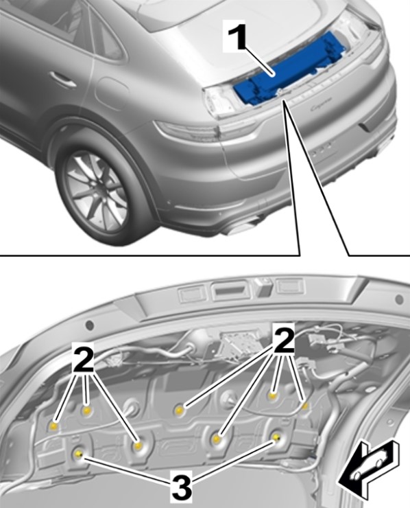 9YA производство 2018>>2024 (D) Приводной блок заднего спойлера Cayenne S Coupé (9YBBB1)