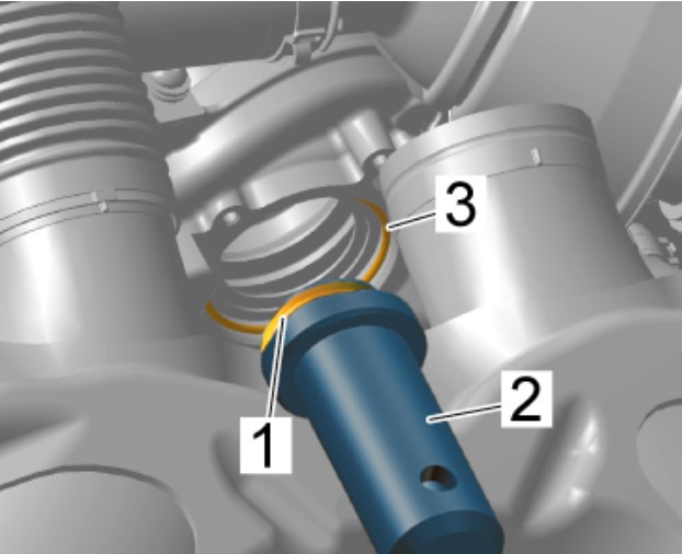 1.1 Установить уплотнение -1- с помощью T40357 - оправки ( -2- ) и запрессовать до упора.
