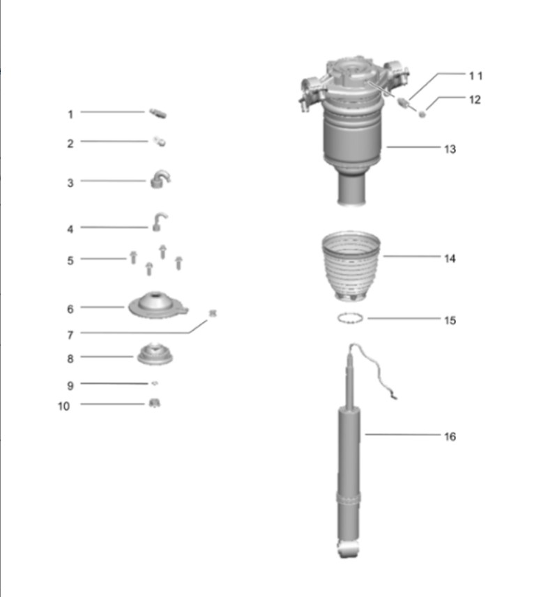 На иллюстрации ниже показана пневматическая амортизационная стойка заднего моста на Cayenne.