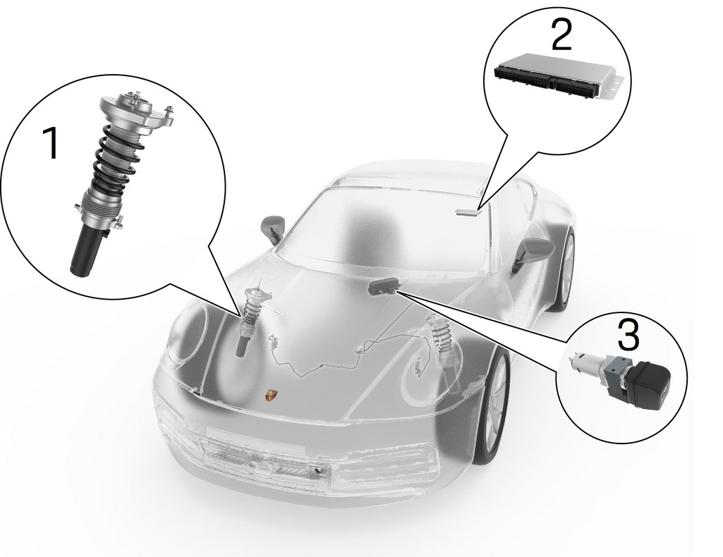 При эксплуатации системы подъема передней оси необходимо следить за тем, чтобы автомобиль ставился на парковку на нижнем базовом уровне, как описано в инструкции по эксплуатации. Невозможно удерживать систему в верхнем положении в течение длительного периода времени. Существует опасность повреждения из-за неконтролируемого опускания передней части в состоянии покоя.