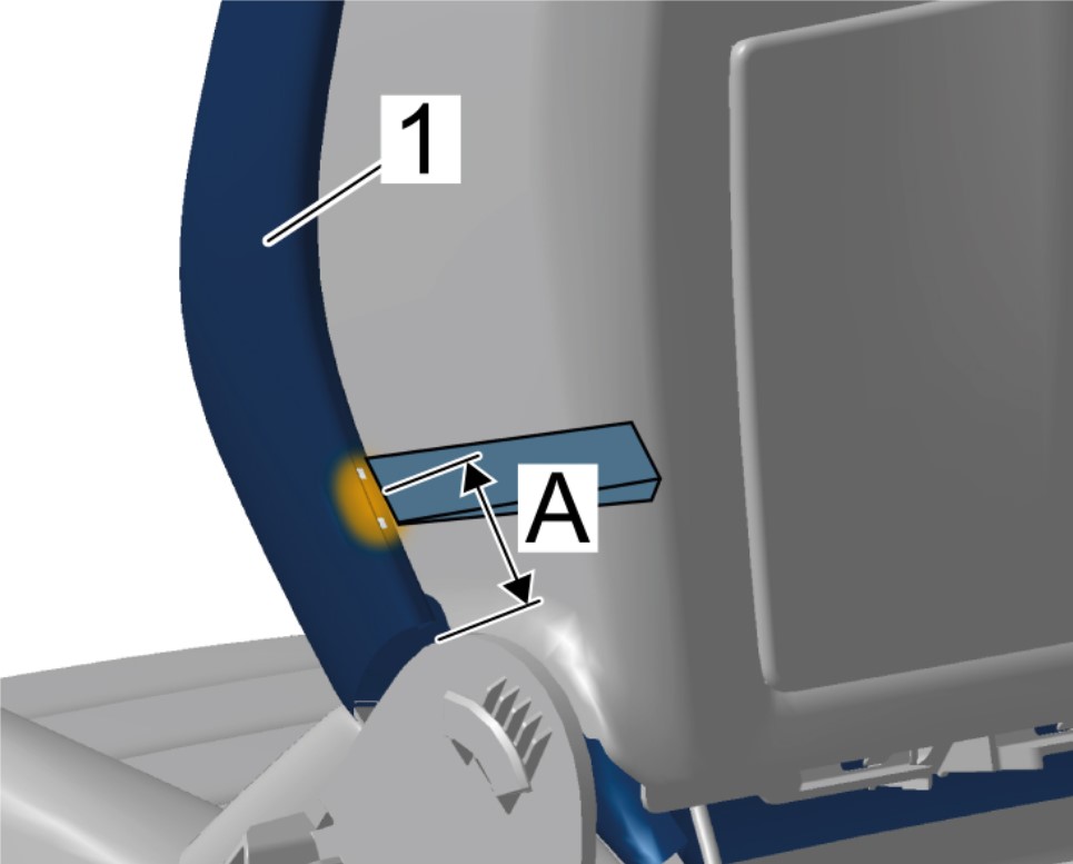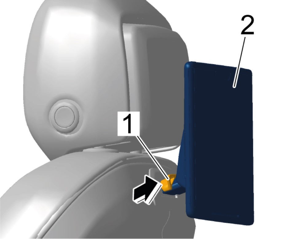 4.1 Ослабить фиксатор -1-в направлении центра спинки сиденья. -стрелка-