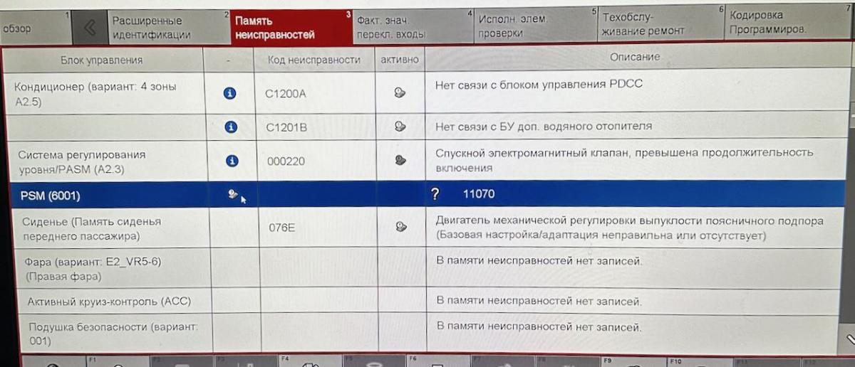 Вот результаты свежей диагностики всех блоков, это все ошибки которые найдены: