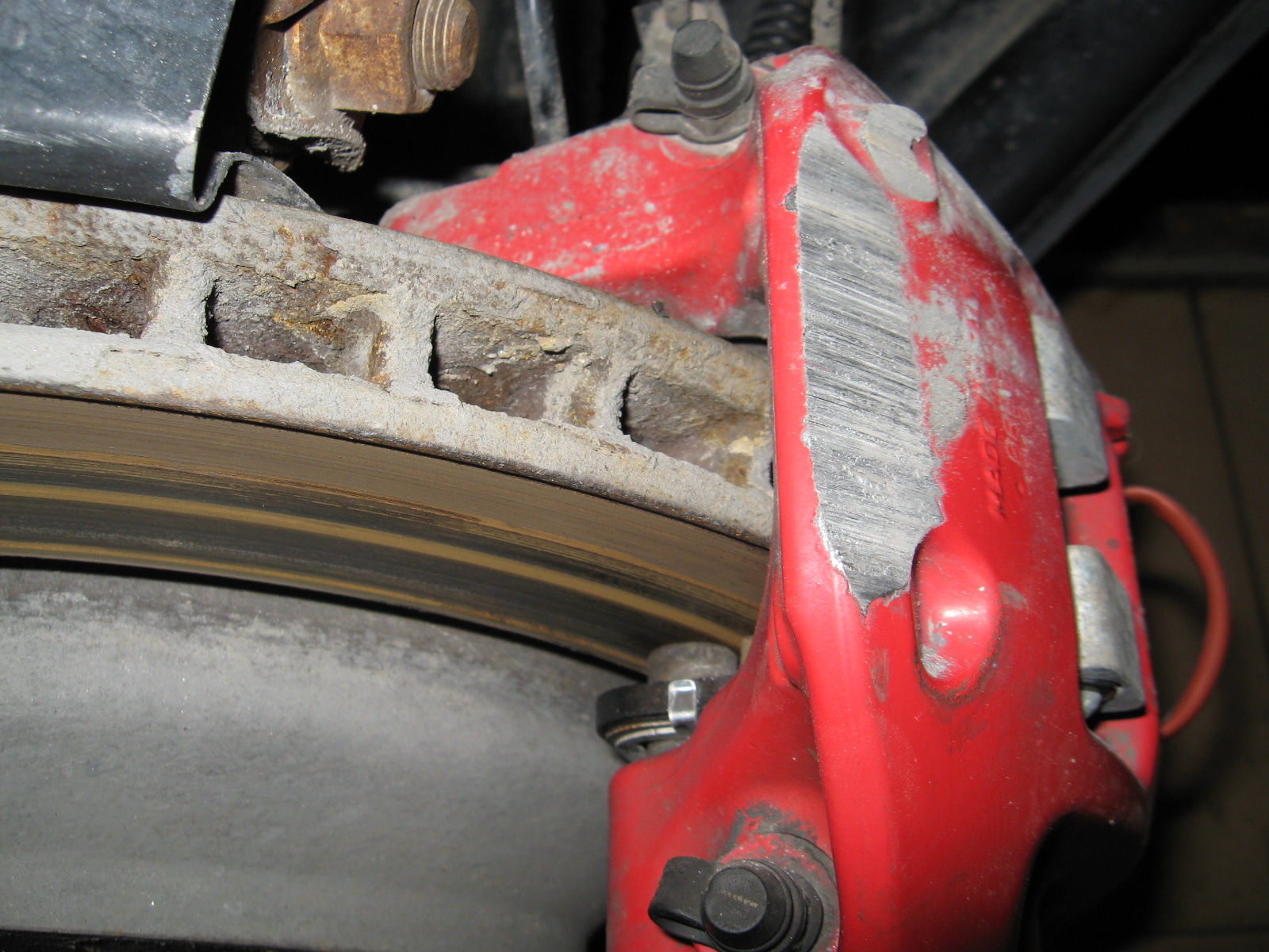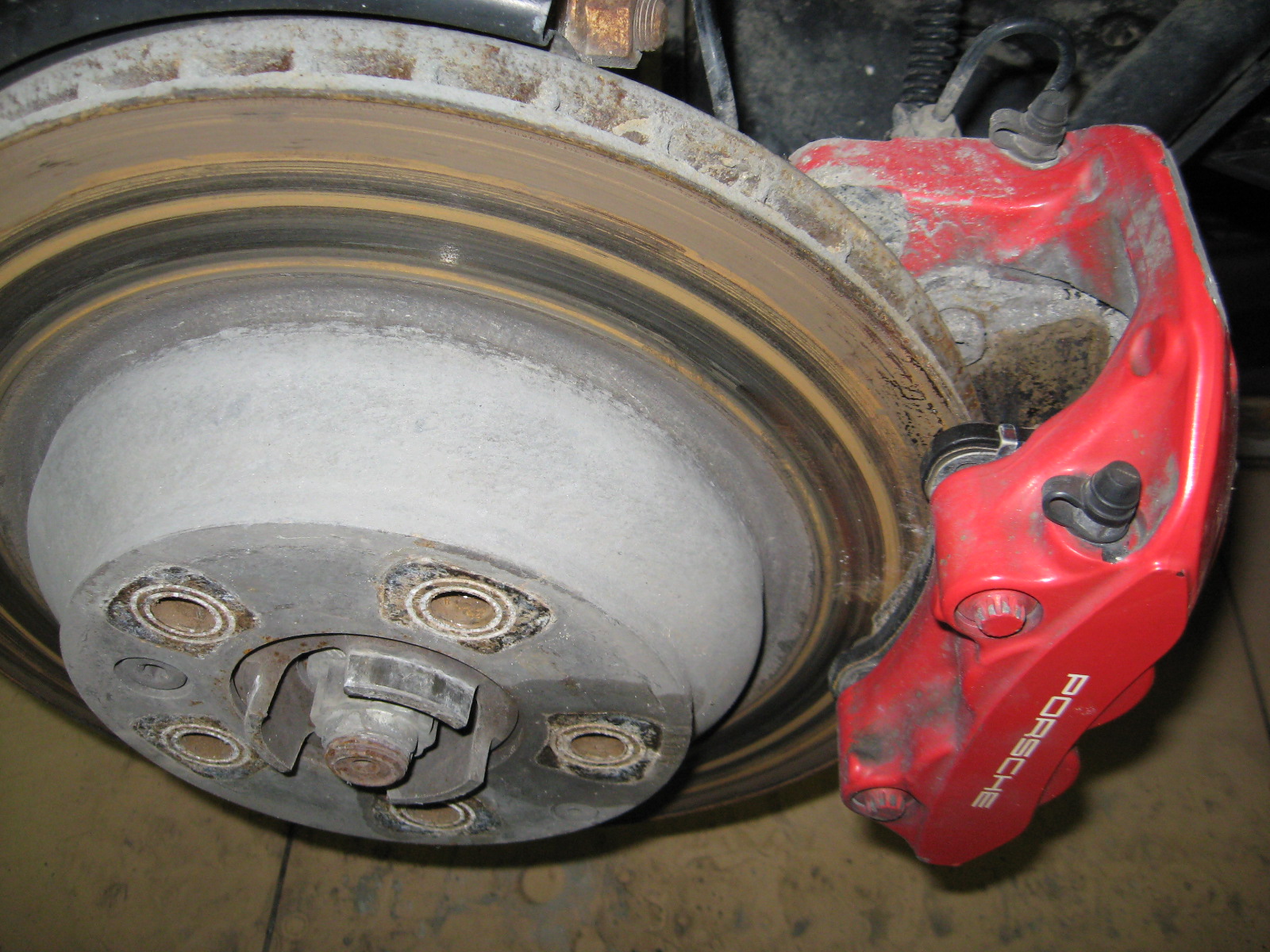 Автомобиль Porsche Cayenne Turbo S, 2009 года выпуска. Посторонний звук при торможении. При осмотре выяснилось, что отсутствует верхний болт крепления суппорта...