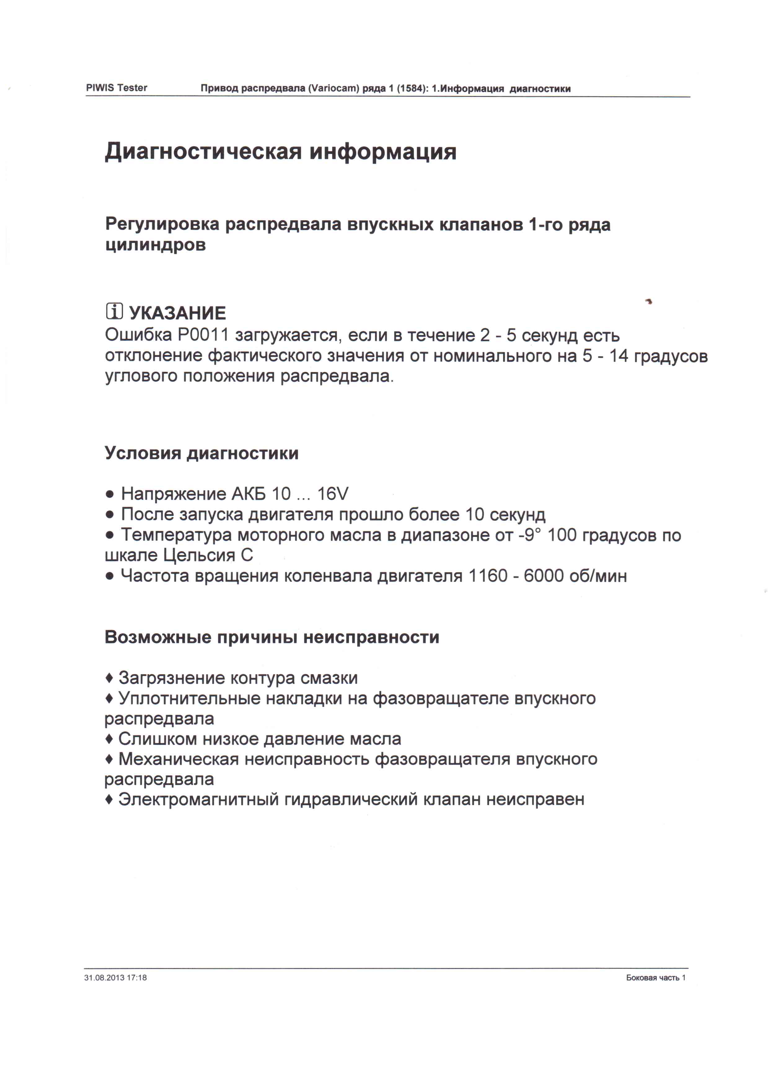 здравствуйте Владимир ! судя по всему вы хороший спец в ремонте каена ! не могли бы вы мне помочь с одним из них ? суть в том что есть ошибка - "16395 Ряд 1: сдвиг фаз газораспределения в позднюю сторону Не достигнуто номинальное значение", сделано : регулировка фаз грм , заменил соленоид (клапан ) управления фазовращ. , заменил фазовращ. (ванас ) появляется вновь ошибка ! я в тупике что делать ? всегда хватало регулировки !