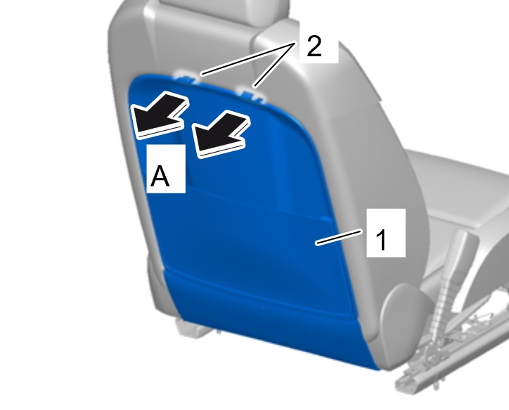 1. Отсоединить верхние крепежные зажимы -2- накладки спинки сиденья -1- -A- .