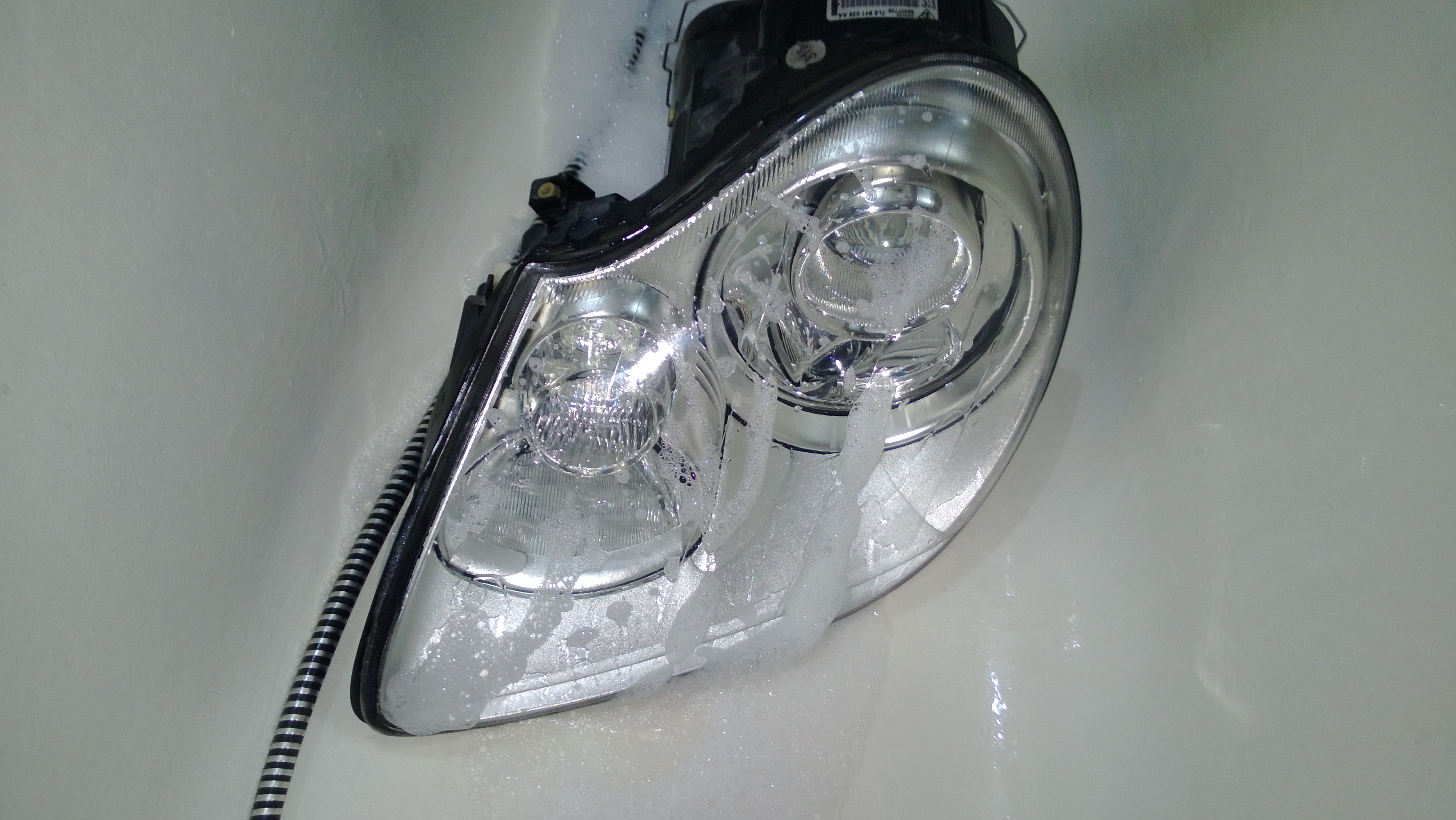 Добрый вечер.После покупки каена сразу был озадачен мыслями побыстрее снять тонированную пленку с передних фар(колхоз).Приехал в гараж и начал снимать.Как снял и прозрел одна фара обсалютно новая а другая пожалтевшая от времени.Было принято решение полернуть сверху.После полировки нужного эфекта не получил и решил помыть фару из нутри.