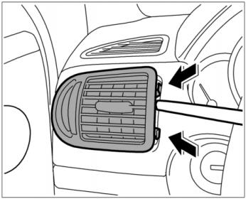 1. Установить пластиковый шпатель в четырех точках между дефлектором и передней панелью, затем отжать дефлектор.