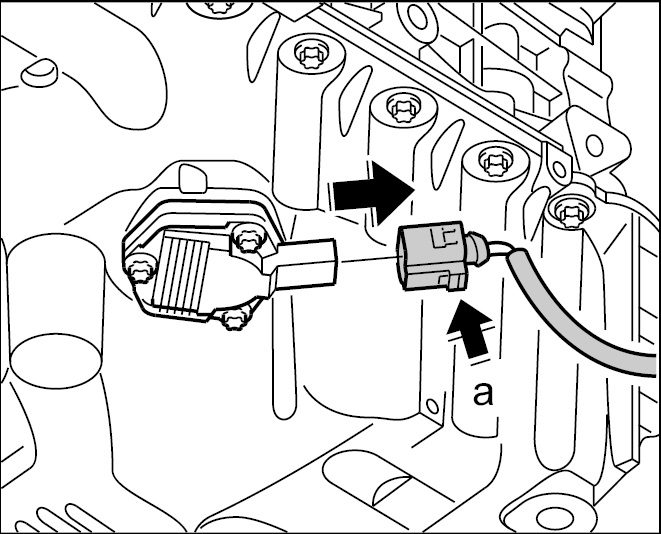 1. Отсоединить электроразъем датчика уровня масла (TOG). При необходимости использовать T10118 монтажный инструмент. Недостаток свободного пространства при работах под кронштейном опоры двигателя и передней осью.