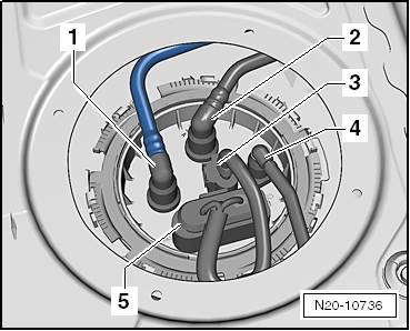 Отсоединить обратную топливную магистраль (синяя или с синей меткой) от модуля подачи топлива. Отсоединить разъёмные муфты.