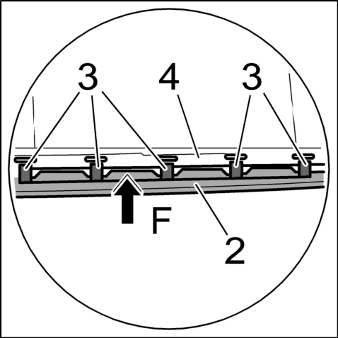 4. Установить крепежную ленту обивки -5- -стрелка D- .