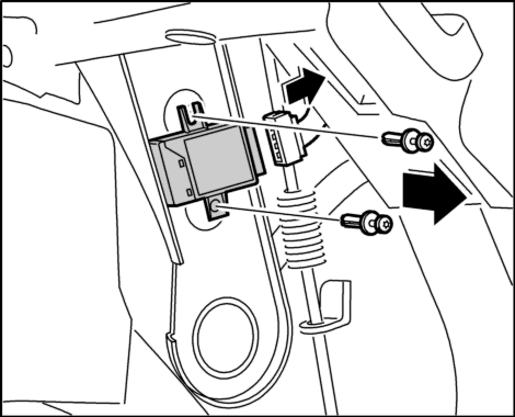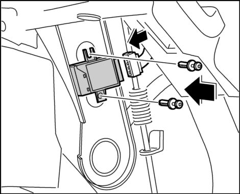 7. Извлечь из зажимов трос приводного механизма стояночного тормоза.