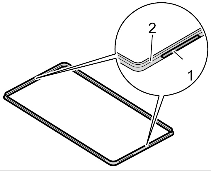 6. Приклеить войлочные полоски -1- по центру внешней стороны нижней кромки накладной рамки -2- справа и слева.