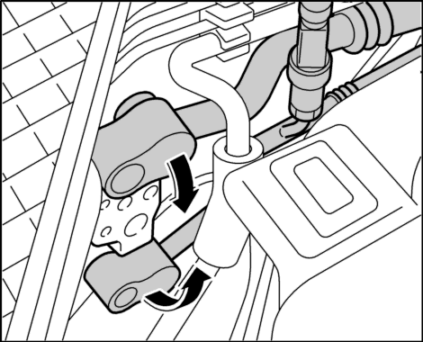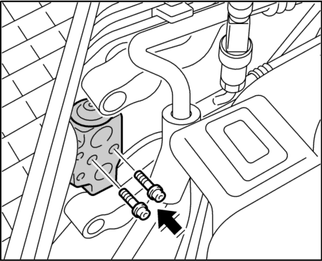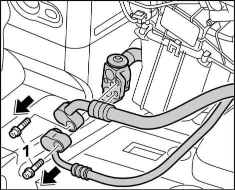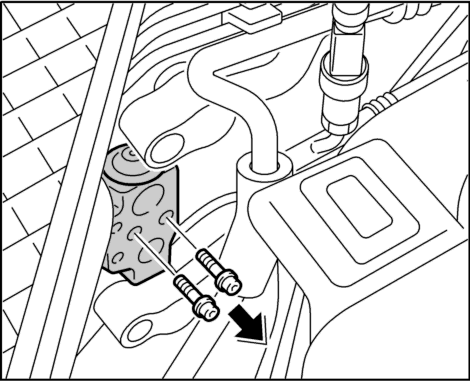 2. Выкрутить оба крепежных винта трубопроводов хладагента в районе расширительного клапана.