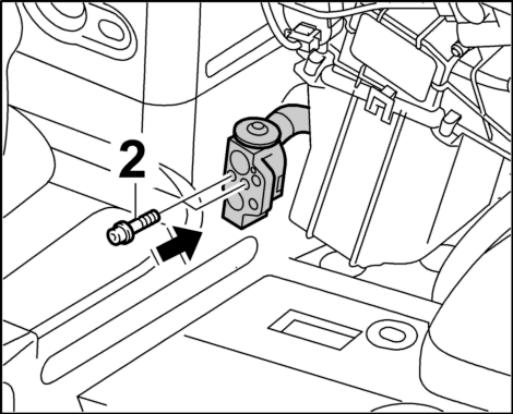 5. Выкрутить оба крепежных винта расширительного клапана и извлечь расширительный клапан.