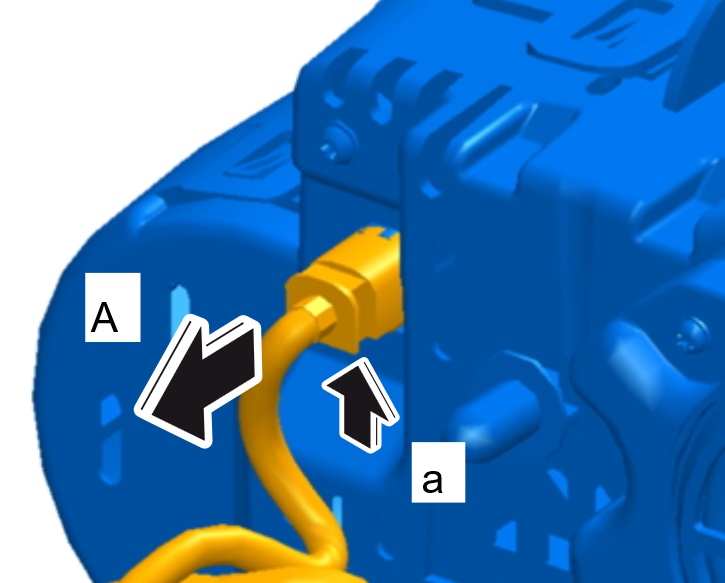 3. Разблокировать скобу -1- электрического разъема -a- и откинуть ее -A- , затем отсоединить разъем -B- .