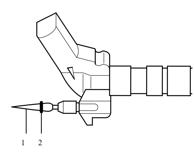 12. Установить новые уплотнительные кольца круглого сечения -2- соединений отводящих топливопроводов на форсунках. Для того чтобы при этом избежать повреждения уплотнительных колец круглого сечения -2- , надвигайте уплотнительные кольца круглого сечения -2- через монтажную оправку -1- .