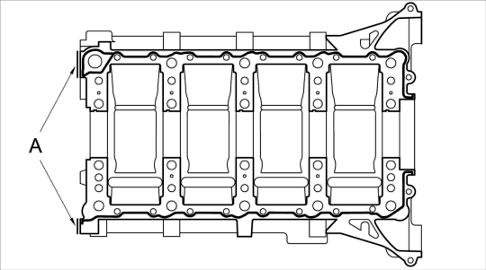 Нанести жидкий герметик 00004320458 (состояние на 02/06, герметик на текущий момент - см. каталог запчастей) на нижнюю часть блока цилиндров в соответствии с рисунком. Отмеченные поверхности -A- следует очистить после монтажа.