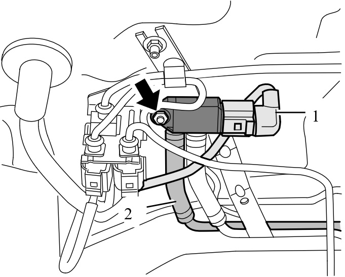 4. Выверните крепежную гайку -стрелка- и выньте датчик дифференциального давления -1- .
