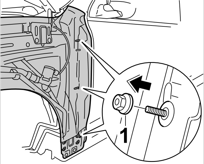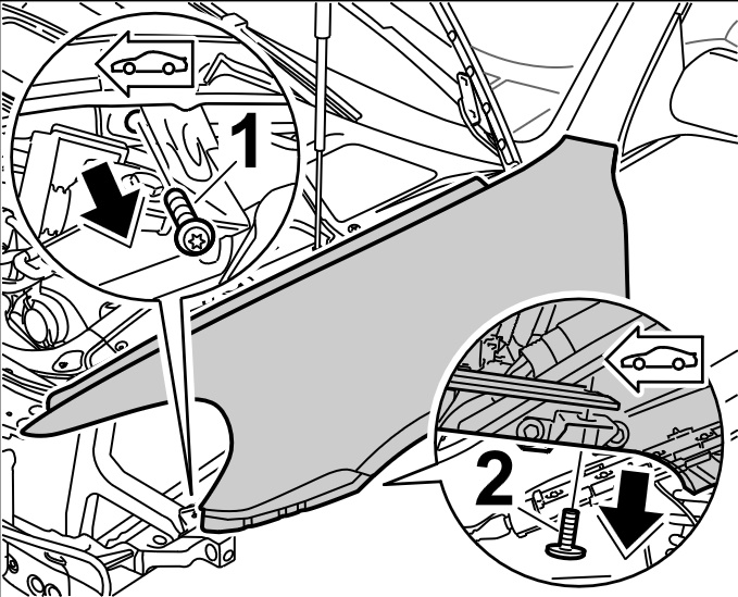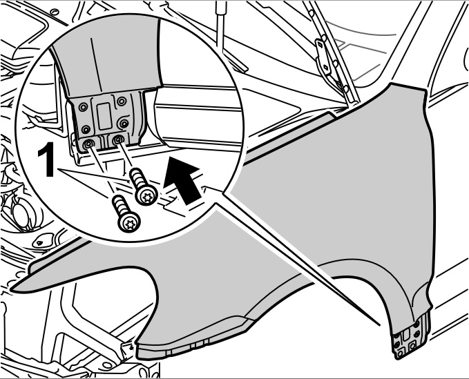 Из-за контура крыла крепежный язычок для демонтажа крыла должен быть деформирован. Если крыло после снятия будет установлено повторно, то при снятии нужно нагреть краску в зоне крепежного язычка с помощью фена.