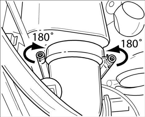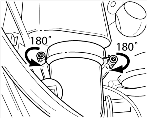 2. Отсоединить патрубки от крышек воздушного фильтра. Для этого повернуть болты на 180° и извлечь их. После этого снять впускные трубы.