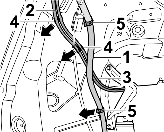 4. Шланг слива воды -1- и напорные масляные магистрали -2 и 3- из держателей -4 и 5- извлечь -стрелки- .
