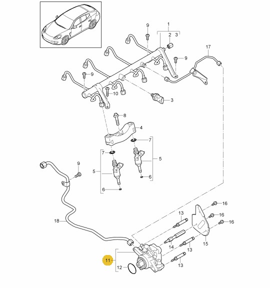 Он предоставляет необходимое для впрыска высокое давление от 40 до 120 бар. Насос приводится в движение посредством впускного распредвала левого ряда цилиндров.
