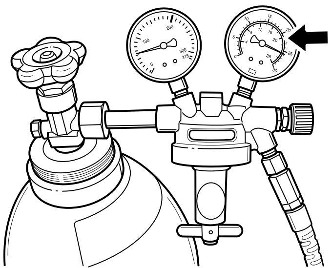 1.2. Открыть баллон с газом и установить → Давление: 17 bar на максимальное значение (на рисунке представлен пример!)