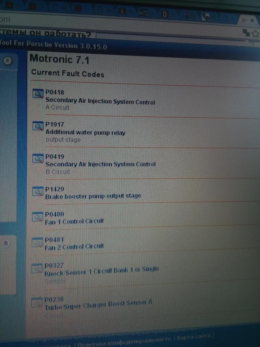 Владимир! подскажите ,проблема с 955 турбо,на холодную с момента заводки работает основной вентилятор охлаждения двиг,режим авто отключен,работает до тех пор пока машина не прогреется до 90 гр примерно,потом вентилятор переходит в свой норм. режим работы и все ок,до тех пор пока машине заглушить и она не остынет немного ,то все повторяется,датчик температуры поменял первым делом,результата ноль,датчик температуры за бортом вроде рабочий значения его актуальны настоящим,с компьютера датчик ож жидкости тоже видит значения так же актуальны, по ошибкам что присутствуют в эбу фото.