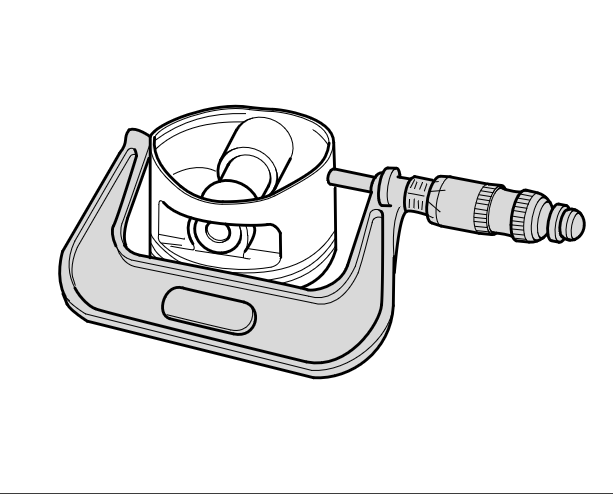 Измерить с помощью внешнего микрометра на 75 … 100 мм прим. в 10 мм от нижней кромки, под углом 90° к оси поршневого пальца.