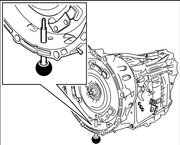 Гидротрансформатор установлен в правильном монтажном положении, если возможно установить специальный инструмент стопорные штифты через отверстие в картере гидротрансформатора перед гидротрансформатором -лупа- .