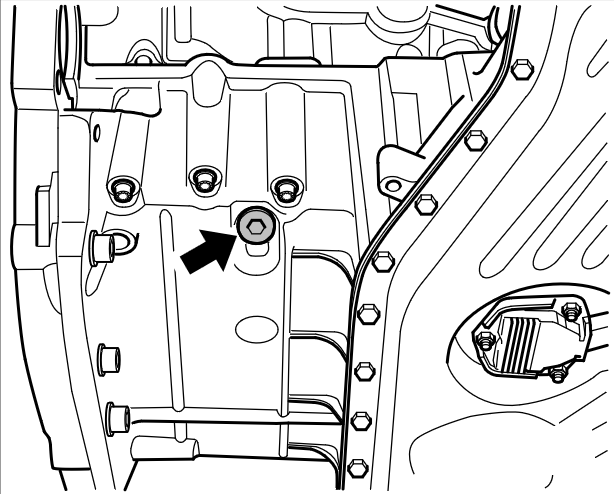 1. Вывернуть из верхней части масляного поддона запорный винт метки “ВМТ” -стрелка- . Собрать вытекающее моторное масло.