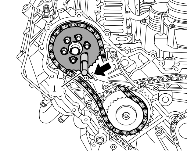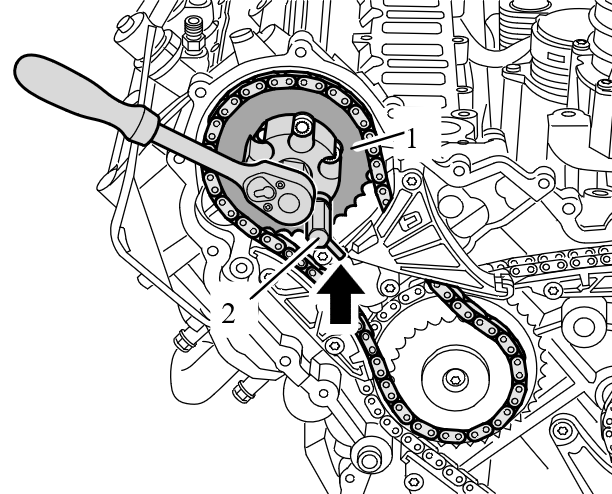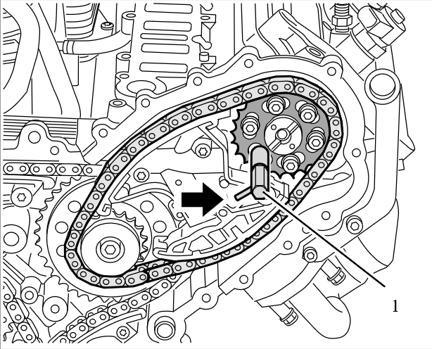 Никогда не проворачивать коленчатый вал двигателя без натяжителя цепи.