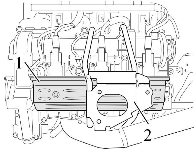 4. Снять держатель дополнительного глушителя. Отсоединить кабельные разъемы катушек зажигания и электромагнитных гидравлических клапанов. Выкрутить четыре винта Torx: сторона впуска - два винта M8 x 30, сторона выпуска - два винта M8 x 25, снять держатель.