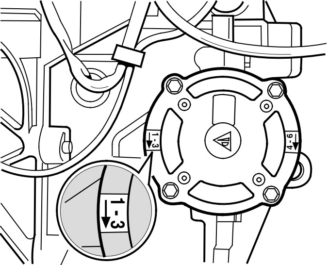 Ряд цилиндров 1-3: Нанесенная стрелка указывает против часовой стрелки.