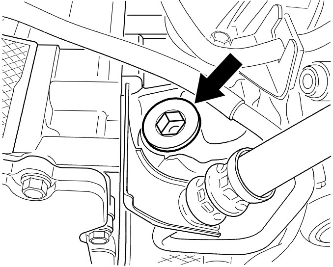 15. Установить натяжитель цепи, сторона 4-6 (внутренний шестигранник SW 14). Установить и затянуть натяжитель цепи с новым алюминиевым уплотнительным кольцом. → момент затяжки: 80 Nm