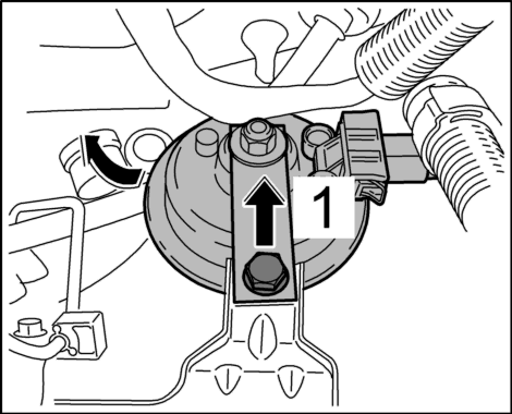 1. Выкрутить крепежный винт -стрелка 1- , извлечь звуковой сигнал в сторону и вверх -стрелка- .