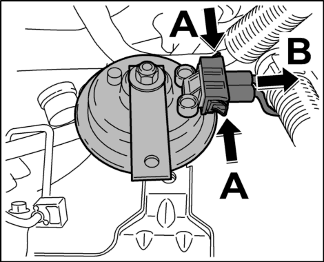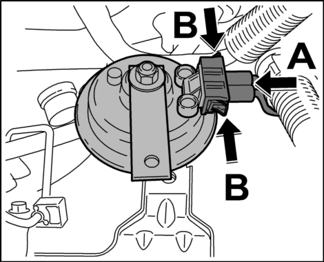 1. Надеть разъем на звуковой сигнал -стрелка A- , пока фиксатор -B- отчетливо не сработает.